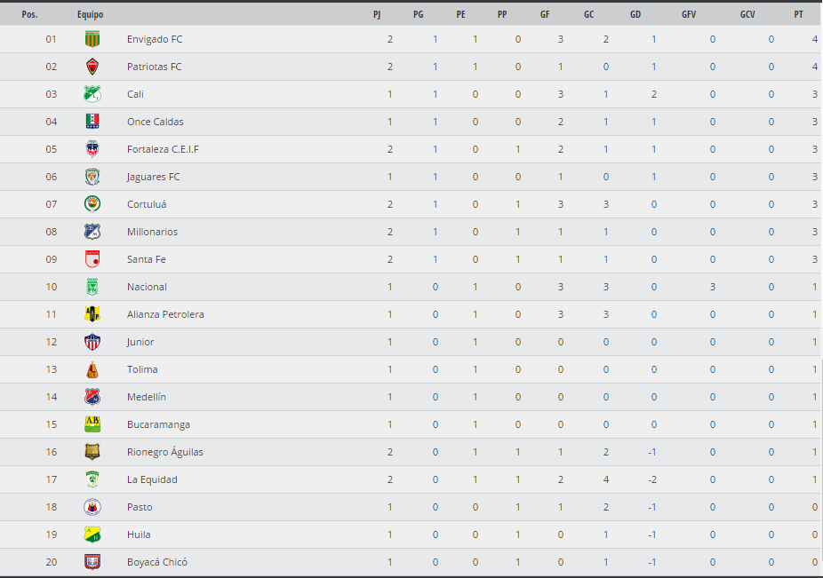 | Liga Betplay | Futbolred.com Resultados Y Tabla De Posiciones Fecha 5 De La Liga Betplay.